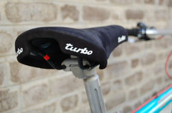 Une selle Turbo réédition a été installée afin de lui apporter un look plus haut de gamme.