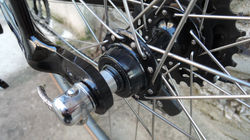 Le vélo a 34 ans et pourtant son état est tout simplement exceptionnel. Les pneus d'origine sont là, même s'ils sont craquelés, la chaîne est comme neuve et les flancs des jantes sont à peine marqués par les freinages. On imagine très bien qu'il aurait pu sortir du magasin il y a quelques mois seulement.