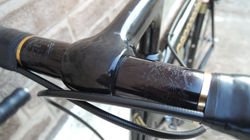 L'état de la selle est souvent un très bon indicateur de l'utilisation d'un vélo. Quand elle est d'origine (ce qui est assez rare) elle est souvent abîmée. Ici malgré un léger accroc probablement dû au stockage, son état parle de lui-même.